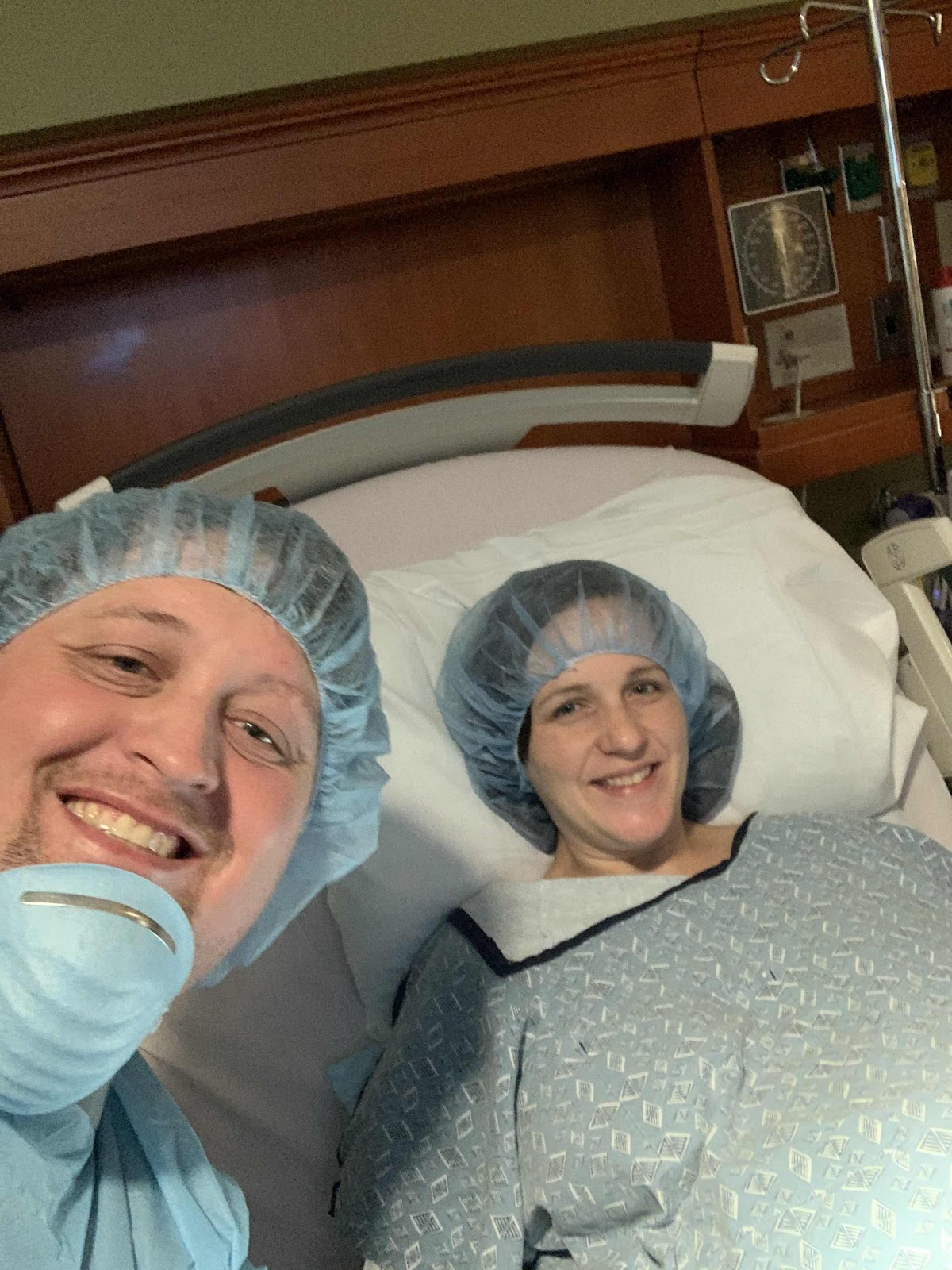 Brystol Claire came out first weighing in at 5 lbs 13oz. Bentlee was next weighing in at 6lbs even, but like the ultrasound had shown he was struggling to breath. I literally got a glimpse of him & off he went to the NICU. He stayed there for the next 8 days! Brystol Claire got to go with us to a regular nursery/postpartum room.